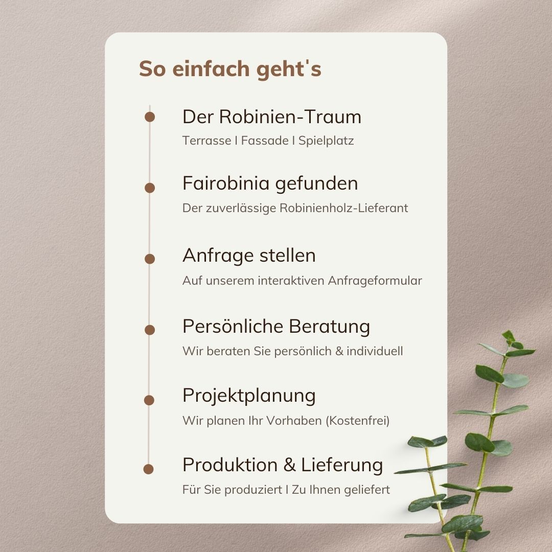 Wir begleiten Sie von Anfang bis Ende, von der Beratung und Planung bis hin zur Lieferung des Terrassensets und sorgen dafür, dass Sie kompetent betreut werden.